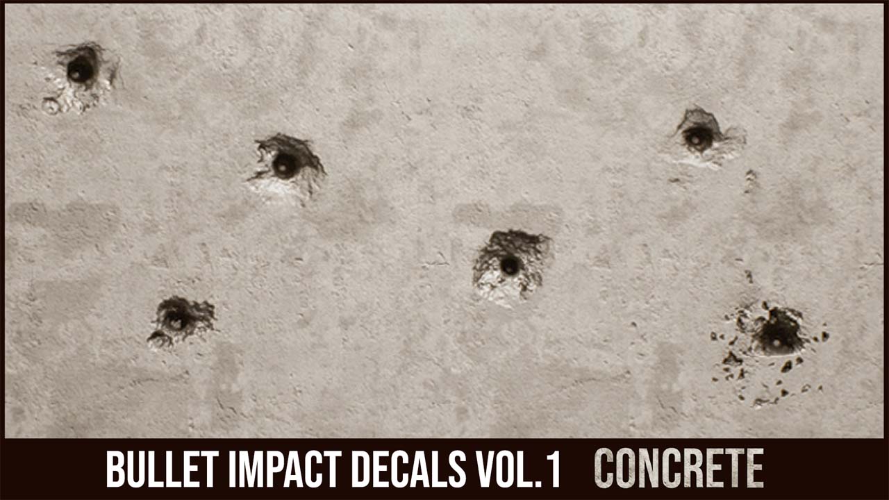 Мгновенно добавляйте в свой проект высококачественные реалистичные изображения повреждений от пуль. В этом пакете используется параллаксное отображение окклюзии для создания убедительной глубины и детализации каждого удара. Перетаскивайте и преобразуйте свои сцены с помощью динамических пулевых отверстий для достижения нового уровня погружения. Каждая наклейка полностью настраиваема, что позволяет вам точно настроить эффект глубины и цветовую гамму, чтобы они идеально соответствовали вашей сцене.